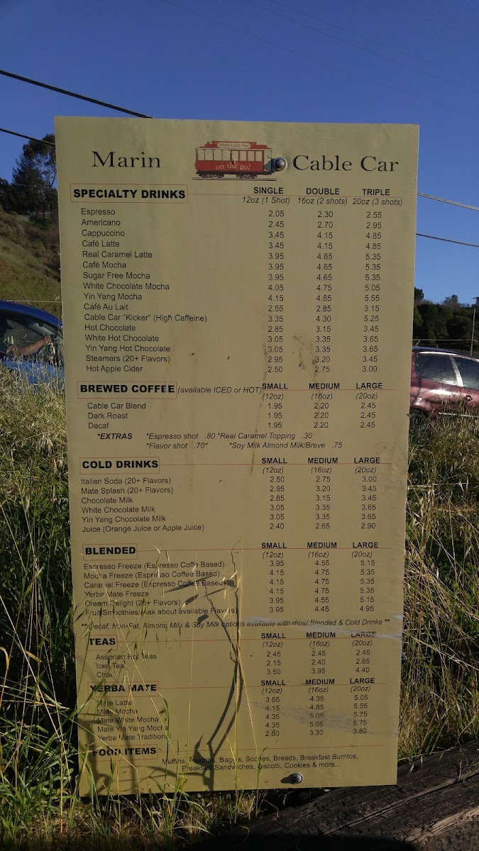 Cable Car Coffee Menu